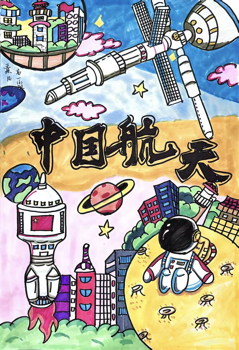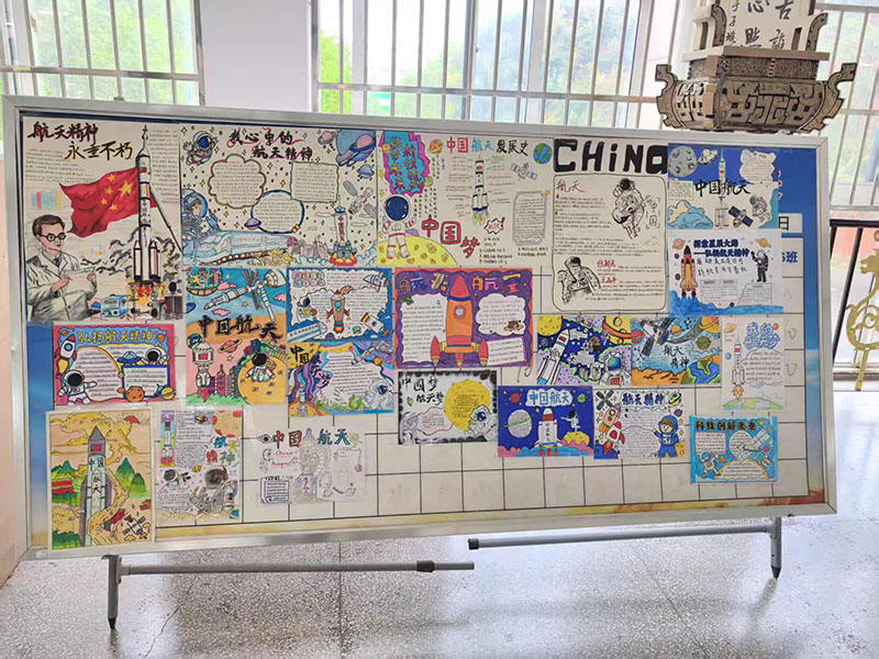 本活动得到了同学们的积极响应。在创作过程中,同学们化身“航天文化传播者”,通过查阅资料、整理素材,深入了解了中国航天从“东方红一号”升空到“嫦娥探月”“祝融探火”“神舟飞天”的辉煌历程。手抄报作品主题鲜明、内容丰富,有的以时间轴呈现中国航天发展脉络,有的聚焦航天英雄事迹,有的则通过漫画、插画等形式展现对未来航天探索的畅想。同学们巧妙运用色彩与排版,将“特别能吃苦、特别能战斗、特别能攻关、特别能奉献”的航天精神融入每一笔、每一划中,表达了对航天事业的崇敬与向往。