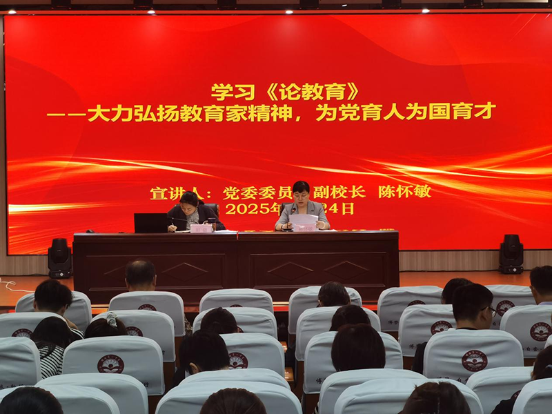会议伊始,陈怀敏同志带领全体党员开展系列专题学习。首先深入学习《论教育》中“大力弘扬教育家精神,为党育人为国育才”相关内容,系统回顾了习近平同志2013年至2023年间关于教育工作的重要论述,重点阐释了“四有”好老师标准与中国特有的教育家精神内涵,强调教师作为立教之本、兴教之源,需牢记立德树人初心,以赤诚之心投身教育事业。
